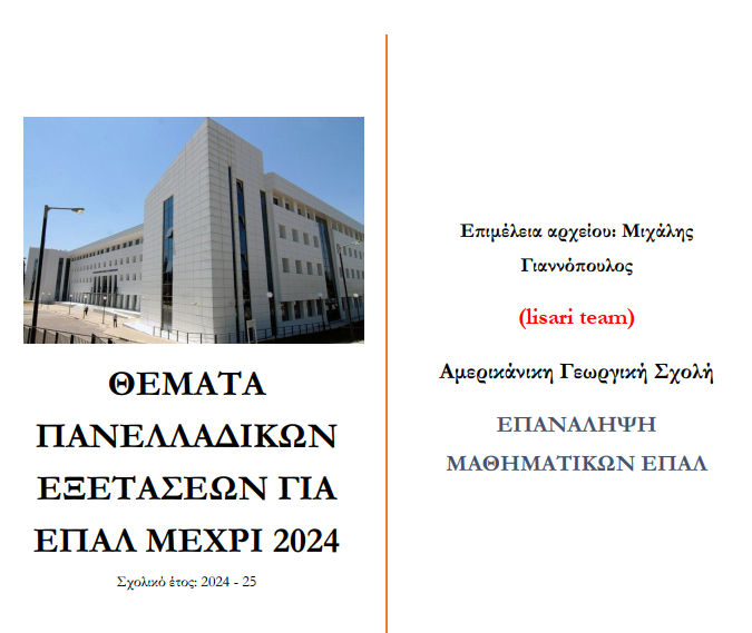 Πανελλαδικές Εξετάσεις 2024 ΕΠΑ.Λ Μαθηματικά (Άλγεβρα) Επιμέλεια: Μάκης Χατζόπουλος Οι δύο αγαπητοί φίλοι, Αρχιμήδης (Α) και Ευκλείδης (Ε), όπως θα έχετε διαπιστώσει, έχουν εκ διαμέτρου αντίθετες αντιλήψεις - απόψεις, παρόλα αυτά τους ενώνει μια μεγάλη αγάπη, τα μαθηματικά! Είναι Σάββατο βράδυ και περπατούν στα λιθόστρωτα σοκάκια της Πλάκας, συζητούν για τι άλλο, για τα θέματα των Πανελλαδικών Εξετάσεων. Όχι όμως των ΓΕΛ όπως μας έχουν συνηθίσει, αλλά για τα θέματα των μαθηματικών στα ΕΠΑ.Λ 1/6/2024 που όπως θα δούμε έχουν πολλά να πουν! Ας τους απολαύσουμε! Το παρόν κείμενο αποτελεί προϊόν μυθοπλασίας. Τα πρόσωπα, τα ονόματα και οι καταστάσεις είναι φανταστικά, οποιαδήποτε ομοιότητα είναι συμπτωματική και δεν ανταποκρίνεται στην πραγματικότητα. Αρχιμήδης (Α): Έλα πες μου τι θες να με ρωτήσεις… Ευκλείδης (Ε): Γιατί το λες; Α: Σε ό,τι ερώτηση και να σου έκανα σήμερα μου απάντησες πολύ γρήγορα και μονολεκτικά, σαν να θέλεις να με ξεπετάξεις γ...